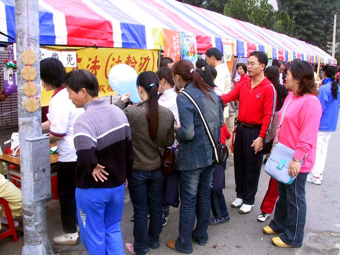 19日是活动的第二天,乡公所给学员提供一个宽敞的服务区。这天服务区人潮络绎不绝,纷纷前来索取法轮功相关资料,大法洪传及迫害真象看板吸引了很多乡亲的目光,驻足观看。学员把用心制作的纸莲花赠送给来索取资料的乡亲。现场人潮踊跃,苏乡长亲自来到服务区给学员加油打气。