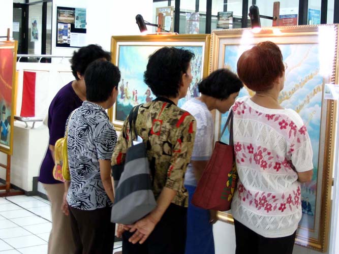 对于此次“坚忍不屈的精神”绘画展,印尼的几家大报作了采访报导。其中发行全印尼的《罗盘报》(Kompas)的记者在报导中说:野蛮的悲剧割伤了我们的心,在中国的悲剧是人类历史中黑暗的一页。记录在写实主义绘画上的黑色历史现在正在泗水市卡里。隆库街的泗水大学国际村大楼内展示。……这些画只是反映了那个竹幕国家发生的悲剧之冰山一角。……虽然面对酷刑折磨,一个修炼者看起来被赋予了那样非凡的勇气。……有一幅油画名叫《金莲》,…… 金色象征永恒,莲花象征纯真。这件艺术作品是根据一个真实故事创作的:一位母亲和她的幼儿,因为勇敢的坚持对纯真的信仰,而被害致死。