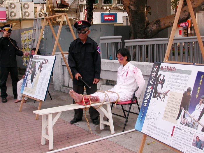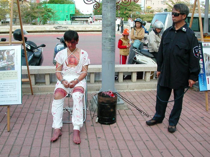 展示的酷刑之三:关小笼,奴工 |   展示的酷刑之四:烙刑 |   展示酷刑之五:插竹签 |