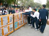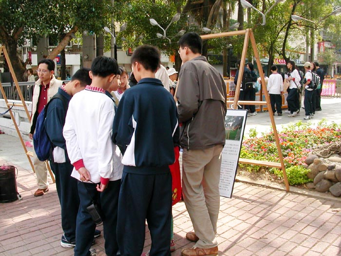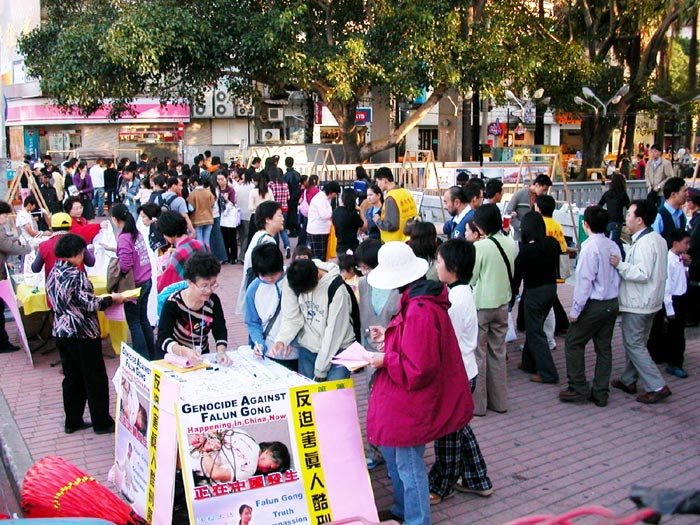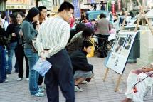 民众踊跃签名支持反迫害 |   围观民众越来越多 |   一群学生围着看酷刑真象 |
