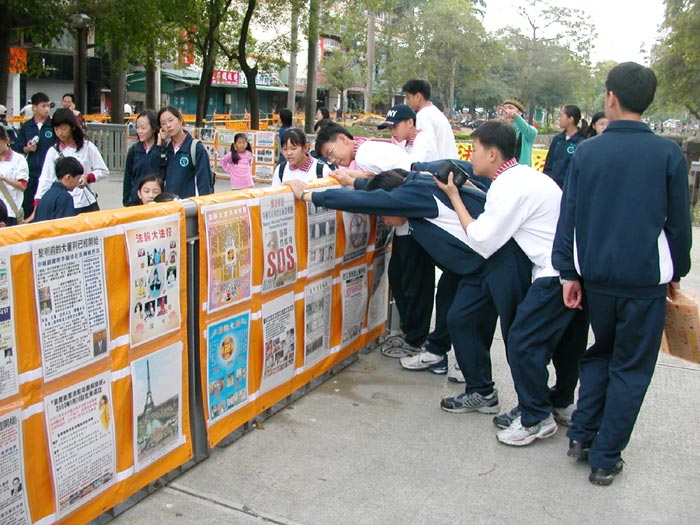 有些民众原本不愿意拿真象材料,听到学员解释法轮功在大陆遭非法打压,便主动索取真象材料;在阅读揭露酷刑的真象材料时,人们不敢置信现在的文明时代还会发生这样的事情;还有四五年级的小学生目不转睛、拉长脖子仔细的观看展板,并询问法轮功学员在大陆被迫害的情形;原本表示听不懂中文的两个来自越南的工作者,听完英文解释中描述大陆法轮功学员遭受到的迫害后,主动提说会讲国语,但看不懂中文,学员用中文继续讲真象;一名男士表示在网路上有看过这样的迫害图片,并直指这场迫害令人无法理解;火车站前面有两位七八十岁的老人正在吃便当,关心的询问着学员在大陆打压情况;几位少女看到酷刑展时直问这是真的吗?当听到回答时,眼泪马上涌入眼眶,一边含泪一边听法轮功学员的解说。