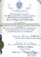 褒奖李先生使人们改善健康、提高道德水平的教导,并褒奖中国的法轮大法修炼者们,他们在个人极端危险的情况下,仍然坚持他们修炼真善忍信仰的权利。谨祝真善忍画展和各项文化活动获得巨大成功。