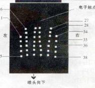 第三步:取6毫米宽的胶带,粘贴到电子触点27(彩色墨盒识别),28(彩色墨盒信息写入),34(写入芯片信息)脚上。
