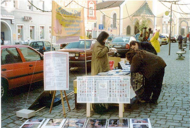 很多人为呼吁释放法轮功修炼者徐幼林(一位德国学员的母亲)签名。徐幼林因分发真象资料,在中国没有经过法律审判程序的情况下被送進劳教所。同时人们还为支持审判迫害法轮功的元凶江泽民签名。在活动之前,学员们已通知了当地的报社,所以经常遇到人们说,我们已经在报纸上读到了有关你们的活动消息。