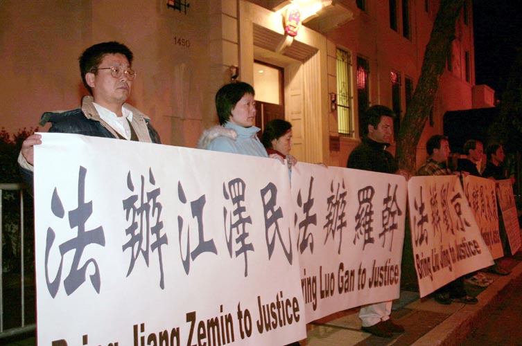 来自南湾的法轮功学员曾先生说:“我们来领馆就是要求中国政府停止迫害,同时告诉那些追随江××迫害法轮功的人,停止继续作恶,因为作恶者必将遭到制裁,包括那些帮助江××在海外散布仇恨法轮功谣言的领馆官员。由于罗干、刘京和周永康至今仍然积极帮助江××迫害法轮功,从现在起,我们除了要求法办江××,还要求法办罗干、刘京和周永康。”(明慧记者黄凯莉旧金山报道)