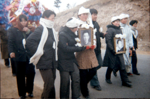 灵车所到之处乡亲们纷纷走出家门,跟随着灵车倾听着大法弟子们讲诉宋友春所遭受的种种迫害,在场的众乡亲被这庄严、隆重的场面感动了。他们看到了灵车上由宋友春的女儿、侄女分别捧着的宋友春生前英俊、潇洒大照片和死后两眼圆瞪、瘦骨如柴、血迹斑斑的大照片落泪了,有的急忙跑回家中取来纸在灵车前烧,以祭奠这位只是因为一句真话,一个信仰就被活活迫害致死的同乡。
