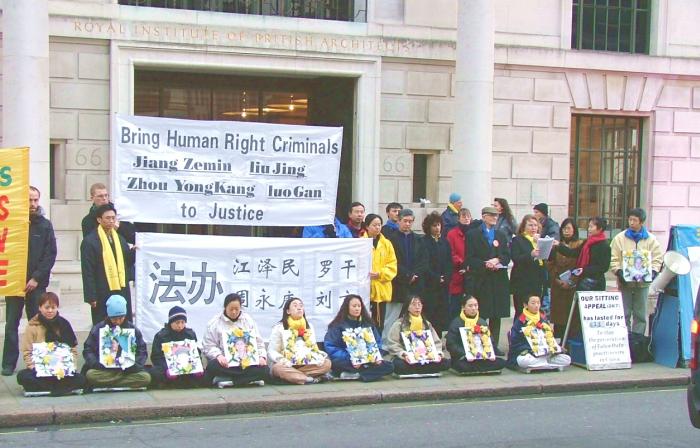 在下午四时的新闻发布会上,部分法轮功学员手捧被迫害致死的学员遗像坐在前列,一些学员手举横幅站在后面,其中有两副用中英文书写的标语尤为醒目:“严惩江泽民,罗干,刘京,周永康”。此四人在迫害法轮功的事件中扮演著最邪恶的角色,他们唆使610办公室、公安部及看守所等机构使用极其残酷的手段摧残大法弟子,并下达打死算白死、打死算自杀的文件,派发死亡名额给各个劳教所。在四年多的时间,已证实有880多名法轮功学员被迫害致死。