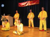 中西方学员表演五套法轮功功法参加庆祝仪式的当地市民学习法轮功功法舞蹈表演