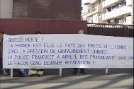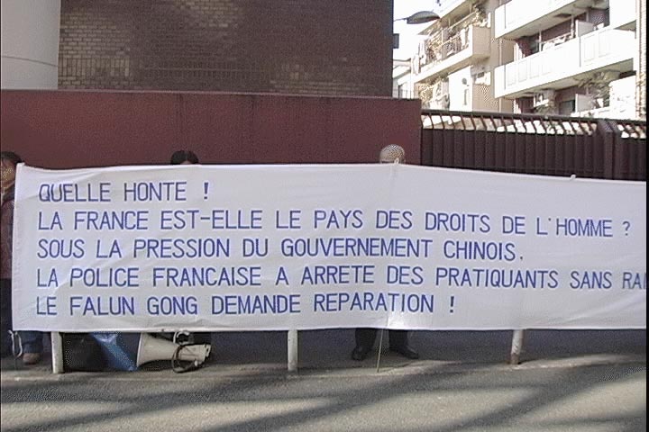 | 法轮功学员展开“要求法国当局向法轮功学员致歉”、“法轮大法好”等中、法文横幅 | |