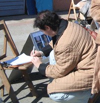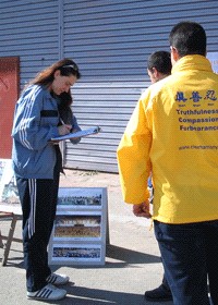 很多人在声援在中国受迫害的法轮功学员的征签表上签字,有的人签好字后还把自己的家人也叫来签字,学员带去的几支笔都不够用。