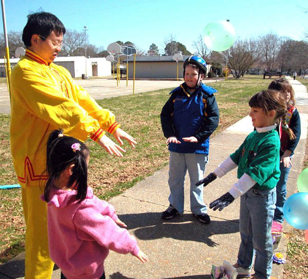 | 法轮功游行方阵 | 当地居民学炼法轮功 | 当地居民学炼法轮功 |