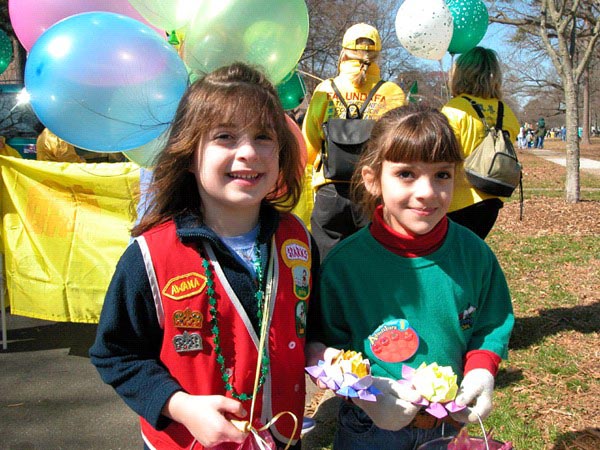 诺福克是一座海滨城市,当由仙女队和炼功队组成的法轮功方阵一出现,就引起了当地居民的强烈关注,大家都在谈论着,小孩子们可等不住,直接上来问是什么,简单的介绍之后,就非常喜欢。尤其是特别喜欢学员们送给他们的纸莲花,还把花别到头顶上,然后她们还跟着炼功,炼得非常认真。