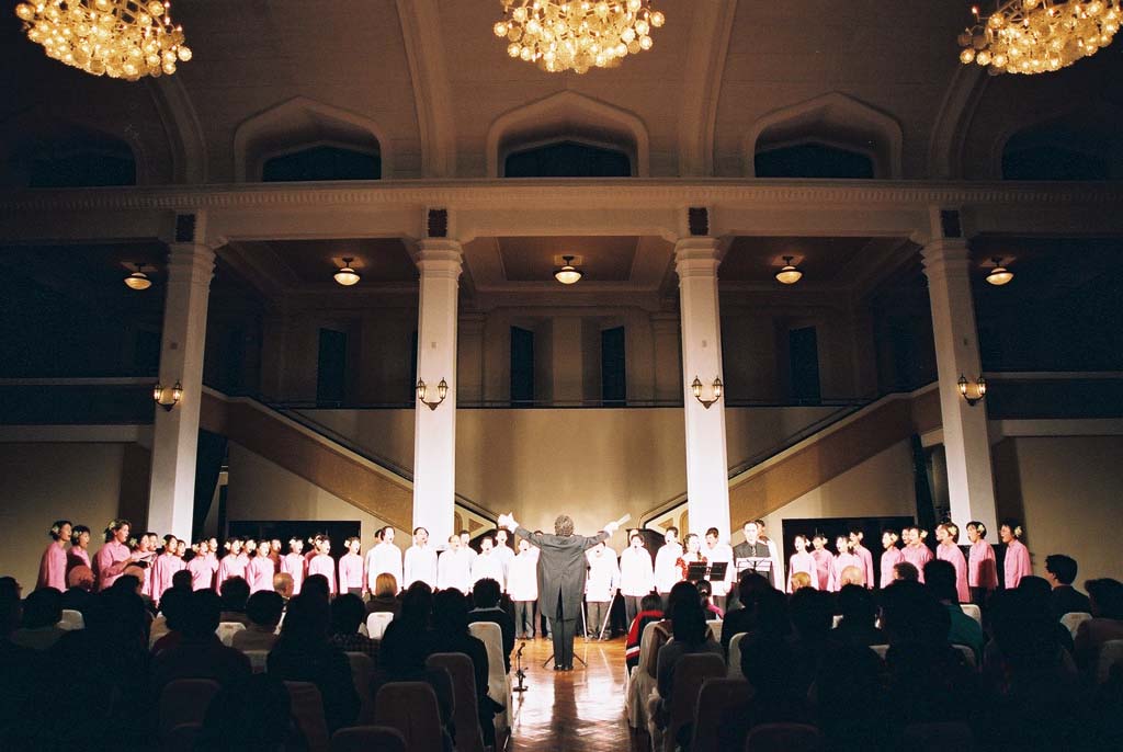 2004年3月5日晚上,由四十多位台湾法轮功学员组成的「天音合唱团」及女高音张佳慧受邀参加“文艺复兴联盟”所主办的「大师音乐会」的表演,美妙的和声撼动了在场观众的心,歌词的意境也给予观众们无限的启发。