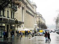 在当晚正式演出之前,他们自告奋勇走上街头,为日内瓦市民、各国游客表演,传达无数法轮功学员的心声。尽管日内瓦街头春雨纷纷,却丝毫挡不住他们的兴致,只要看到他们那认真、专注的表情,听到他们那忘我的歌声,就会感觉到他们是在用心在表演的。