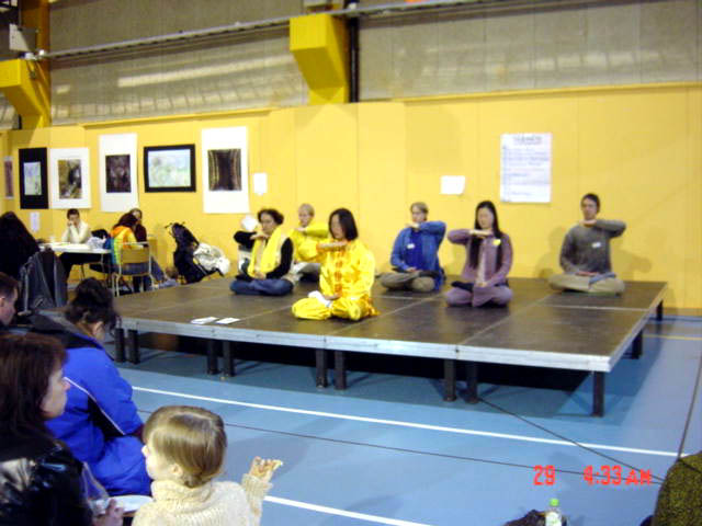 【明慧网2004年3月31日】瑞典每年一度的最大健康博览会于3月27-28日在斯德哥尔摩得利勒侯门举行。部分法轮功学员在这里举办了真相图片展并在舞台上展示了五套功法。大法祥和的能量场在整个博览会上格外的吸引人,数以万计的参观者中,大量的群众对更多地了解法轮功感兴趣,要求来炼功点参加炼功。