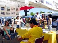 罗兰多街市节是当地社区的一个重要活动,除了吸引许多当地和附近居民的参加之外,也有不少在方圆一百英里之外前来的参展者。今年是法轮功学员首次申请参加该活动。几位学员一早就来到参展地点,将展位布置得清新、整洁、祥和,大法横幅和图片都合理地安排好位置,大法书籍和资料等整齐地摆放在桌子上。此外,在全天的活动中,有两到三名学员不间断地演示五套功法或发正念,其他学员则向观众讲解和发放资料。