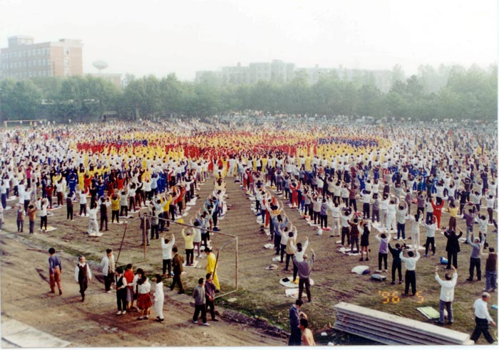 • 历史图片:法轮功小弟子在深圳体育广场集体炼功