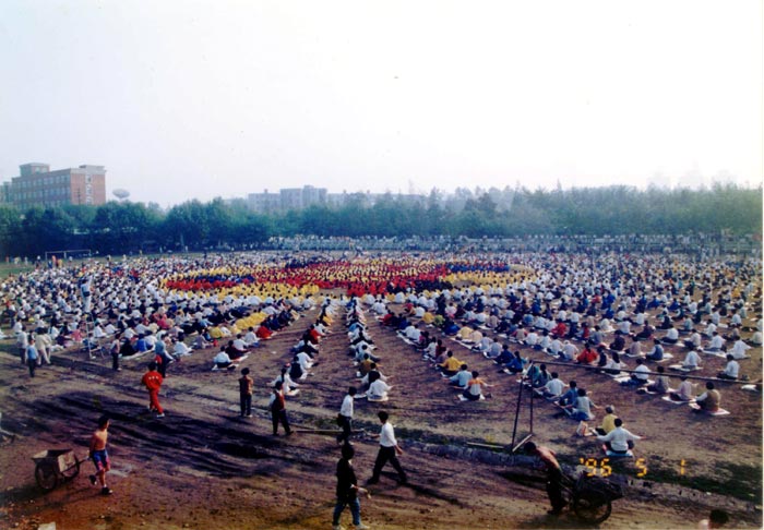 • 历史图片:1999年5月双城市大法弟子在东门广场集体炼功