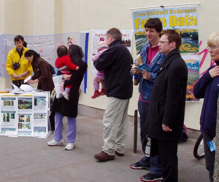 在室内的小会议厅里,一位西方学员向来宾介绍了法轮功是一种源于东方的非常古老的修炼功法,它既能强身健体,又能使人类的道德回升,人们遵循着“真善忍”原理去修炼。讲演之后,两名小弟子演示了五套功法。来宾们兴致勃勃地索取资料,并询问炼功地点。