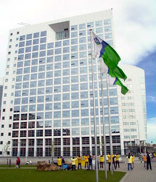 4月22日到中使馆前请愿在海牙国际刑事法庭前洪法