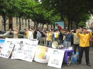 4月23、24日,法国大法弟子在巴黎中使馆、华人聚居区,围绕“4.25”事件讲清真象。