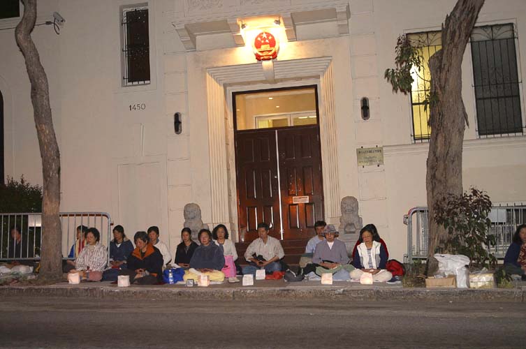 ![]() 展示功法 | ![]() 静坐请愿 | ![]() 出租车司机向学员打出胜利的手势 |