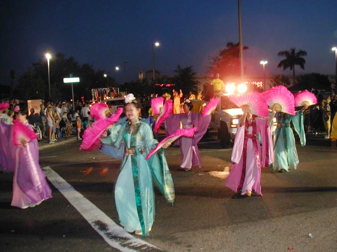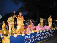 这次游行有一百四十多个团体参加,据估计观众多达十万以上,是佛罗里达州最盛大的游行之一。法轮功学员参加这项活动还是头一次。在长达一个月的欢庆活动中,法轮功成为众人瞩目的焦点。