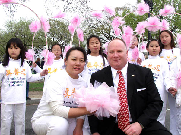 洛克在马里兰州上中学,他修炼法轮功已经超过六年,他今天特别和弟妹一同参加樱花节。他说:“我参加游行表演,除了和大家欢度樱花节,更希望美国人和这里的中国人能了解法轮功,想让大家看到我们的健康、快乐和平静。”洛克说,在学校曾有中国小朋友知道他炼法轮功而疏远他,因这些同学听信中国中央电视台对法轮功的污蔑,对法轮功修炼者有戒备,经过接触,发现法轮功修炼者完全不是中国政府宣传的那样,改变了对法轮功的看法,他们现在都是好朋友。洛克在学校的功课一直是全优,多次应邀和校长吃饭,受嘉奖。