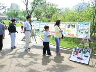 我们的展台除了有大法的资料以外,还根据孩子们的特点,放了一些精美的印着小弟子炼功场景的书签。这些书签也得到了孩子们的青睐,纷纷来索取。最有趣的是有一个蹒跚学步的小宝宝,也拉着父母来到摊位前,伸出胖胖的小手拿一张书签,再拿一份资料,书签自己留着,资料递给了父母。看着那个可爱的认真样,使在场的每一位同修都感受到众生都在等待大法,我们会做的更好。