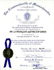 马萨诸塞州众议院向李洪志先生和法轮大法致以最衷心的祝贺!