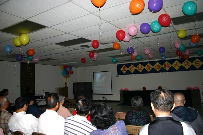 2004年5月13日晚上七点至十点半,休士顿法轮功学员在中华文化服务中心举办活动庆祝世界法轮大法日。法轮功学员的亲人、朋友以及社区的华人踊跃参加,共同欢庆节日。