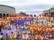 学员在庆祝会上告诉公众说:“这是一个特殊而神圣的日子。12年前,我们伟大的师尊以无比慈悲的胸怀,将法轮大法洪传于世。修者日众,道德回升,身心康健。短短的12年间,真善忍的光辉撒遍了中国大江南北的城市乡村,以及世界各地60多个国家和地区不同种族上亿的人群。”