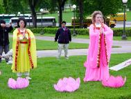 加拿大温哥华学员5月16日在市中心艺术馆前进行庆祝法轮大法洪传十二周年及法轮大法日,丰富多彩的文艺节目和功法表现,吸引了众多的民众观看,充分展现了大法的美好和大法弟子的风范。