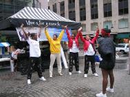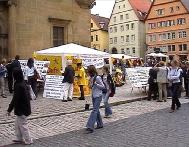 德国中部部分法轮功学员5月15日在法兰克福罗马广场举行庆祝活动,恭祝师尊五十三岁华诞,庆祝第五个世界法轮大法日和师尊传法十二周年。