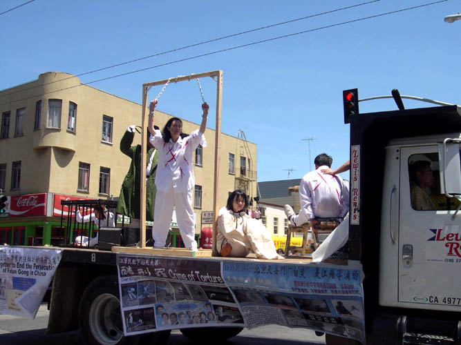 法国国际广播电台5月15日对中国和巴黎大区华语广播最新消息报道:为庆祝第五届法轮大法日,美国南加州地区法轮功学员联系从加州旧金山远道而来的全美汽车之旅学员,昨天在洛杉矶市政府人权广场举行控诉江泽民的大会,并展示中共残酷对待法轮功成员的刑具。法轮功洛杉矶发言人表示,今年一月,控告江泽民的案件上诉到了美国第七巡回法庭,原告律师强调,本案的成立说明,江泽民不会因为他的地位犯下群体灭绝罪而逃避惩罚。