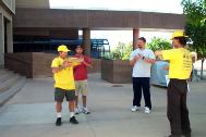在凤凰城,“汽车之旅”与当地学员一起在天普海滩公园(Tempe Beach)炼功并展示真象图板。碰巧当时有另外的团体也在公园举办活动,有千人左右。于是学员们主动向他们发真象材料,有的学员表演功法。活动结束时学员们一起進行了交流。