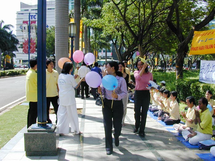 报道说,法轮功协调人萨巴吉欧(Hok Saebagio)说,在中国,炼法轮功的人数超过了共产党员的人数。当天,大约有20名印尼华裔法轮功学员在中国大使馆外,抗议北京当局禁止法轮功,以及逮捕法轮功学员。星期四是法轮功传出12周年。