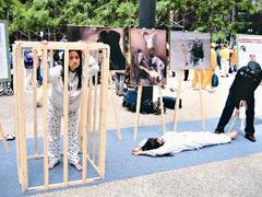 法轮功学员从上周末起,即展开静坐、游行、法轮功学员大型交流会等多项活动,24日并在芝市中心的联邦大楼前举办了法轮功学员被虐情形实物展。这些真人模拟酷刑展,25日移至伊州州府大楼广场前展出,26日将再回到联邦大楼前展出。
