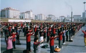 历史图片:1999年5月双城市大法弟子在东门广场集体炼功