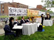 在利用司法程序起诉迫害元凶的同时,从加拿大国会山到安大略省政府,从多伦多市政府前到十几个大学校园里,甚至在加拿大的街头巷尾,人们都可以在模拟审江的法庭上,看到对江氏集团迫害法轮功,群体灭绝罪的审判。