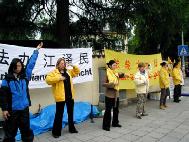 自1999年7月江氏集团在中国发动对法轮功的残酷镇压以来,已证实至少有968名法轮功学员被迫害致死。无数法轮功学员被关進劳教所、精神病医院和洗脑班,倍受精神和肉体的折磨。江氏集团除了在大陆对法轮功实行群体灭绝外,还通过其使领馆将迫害延伸到海外,并散布诬蔑法轮功的不实之词,毒害在海外的中国人。在德国就发生了学员汽车轮胎被扎、护照得不到延长等事件。江及其追随党羽在全球被诉,已成为国际瞩目之人权事件。目前美国、比利时、西班牙、台湾、德国、韩国等国的法轮功学员已经以群体灭绝罪、酷刑罪、反人类罪控告江××及其追随者。