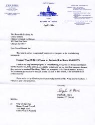 据我了解,他们夫妇在一月份已将护照以及护照延期所必须的所有材料和费用,一起寄给贵领馆办理护照延期。显然,因为他们继续修炼法轮功,你以为就可以扣压他们的护照。这种行为在美国是不能接受的。因为他们的信仰,就迫害无辜的民众,这在我们文明社会是不能容忍的。