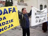 身为英语教师的波兰法轮功学员欧兹梅克介绍说,他和其他几名法轮功学员在胡锦涛一行抵达的当天早晨向波兰检察院递交了一份诉状,指控中国商务部部长薄熙来犯有反人类罪和酷刑罪。