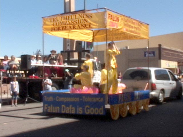 一位西人学员在游行前一周多次驱车前往(Salida)塞来德,在那里各处张贴教功班信息。游行后,学员们在(Salida)塞来德镇的图书馆内教功和介绍了法轮大法,也向前来学功的人们介绍了法轮大法在中国受到的迫害情况。参加者有20多人,大家还时不时的提问,最后,在圆满的气氛中,以学习五套法轮大法功法结束。