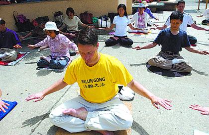 在炼完动功后,记者同巴塔(Kyoko Bata)等几人一同在一棵树下進行了20分钟的打坐。文章介绍说,巴塔生于日本,在纽约已经生活了20年,是一名翻译,巴塔说她整日坐在电脑前,是她的一位朋友向她推荐了法轮功。现在,巴塔每个周六和周日都来参加集体炼功。