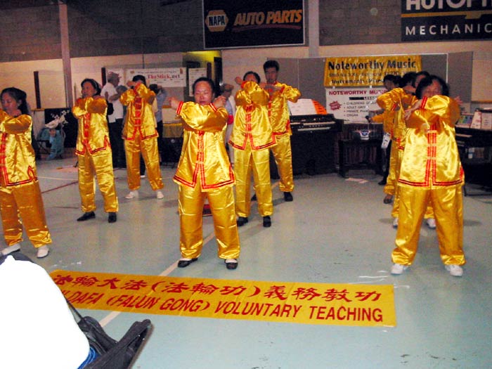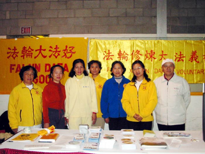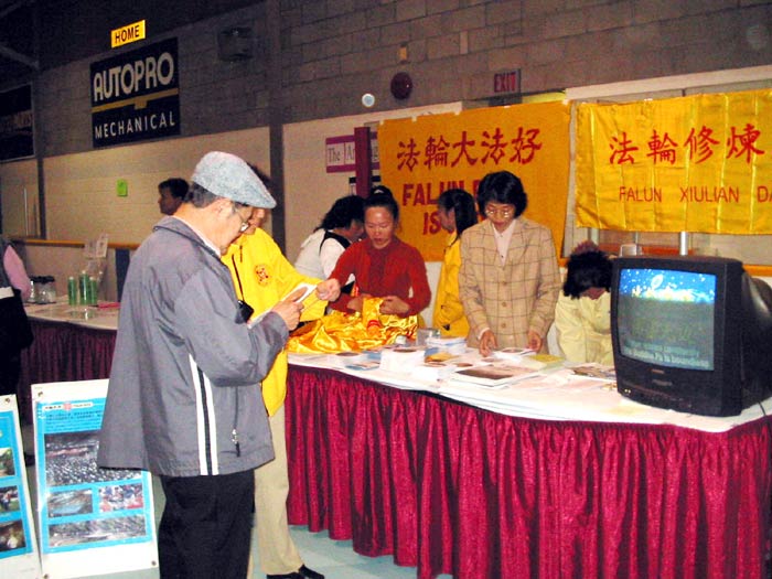 【明慧网2004年6月3日】温哥华列治文法轮功学员6月1日参加了为期两天的列治文“老人健康平安大展”,在近60个展位中,老人们不断的来到法轮功学员的展位前進行咨询,并取走印有炼功点地址的资料。在征得组委会人员同意的情况下,法轮功学员在展览厅中心展示了五套功法,获得了热情的掌声。
