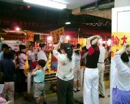 在我们手持“法轮大法好”、“真、善、忍”小三角旗,放着“普度”“济世”的音乐在饶河观光夜市寻找展位时,一位摊位老板洪先生看到即问:“你们是炼法轮功的,法轮功很好,哪里可以学炼?”