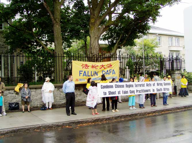 ![]() 法轮功学员冒雨赶到南非驻加拿大大使馆讲述真象 | ![]() 中国大使馆前反迫害 | ![]() 南非驻加大使承诺将信件转交南非政府 |
