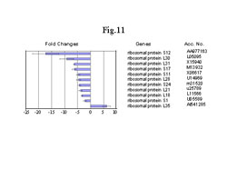 其它下调控的基因包括,参与蛋白质合成的基因,DNA修补的抗氧化酶。主要的抗氧化酶,过氧化氢酶和谷胱甘肽过氧化氢酶,也减少了(图10)。这些与紧张刺激相关的关键酶的减少,以及其它受紧张刺激调控的基因下降,意味着氧化物的生成和大分子的破坏减少,这些基因包括酵母基因在哺乳动物体内的同源基因RAD52(抗辐射)和ERCCs(切除修补)。核糖体是蛋白质合成中重要的成分,而11个核糖体基因中10个下降说明蛋白质合成也可能下降(图11)。令人意想不到的是,两个热休克蛋白质,HSP70和HSP40-3,却显著上升, 这与其它对紧张刺激有关的基因的下降恰恰相反(图10)。 这些紧张刺激调控基因反向调控的分子机理还需要進一步确定。但对于类似这些热休克基因,研究是否可以通过上调控来起到保护作用是应该很有意思的。有证据表明这些热休克蛋白可能对心脏确有保护作用[84]。