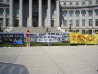 上午11时,科罗拉多州大法学员纷纷前往市政大厅门前,声援在这里举行的新闻发布会。在新闻发布会上,大法学员列举了江泽民、曾庆红政治流氓集团在南非雇凶杀人的证据,其中包括澳洲学员David Liang 在南非中弹时的血淋淋的照片。会上,夏小伟博士控诉了2002年4月他在德国向访德的江泽民元凶進行和平抗议时,被江氏邪恶谎言误导的德国警察对他進行的虐待。指出那是江氏集团利用经济利益直接威逼德国政府的结果,是向德国输出国家恐怖主义的行为,德国政府和民众都受到其伤害。他警示江氏集团南非雇凶杀人更是自曝其恐怖实质,呼吁美国政府和善良民众都站出来谴责江氏集团的恐怖行为,把江氏集团也列入美国全球反恐活动中应该被打击的恐怖对象。